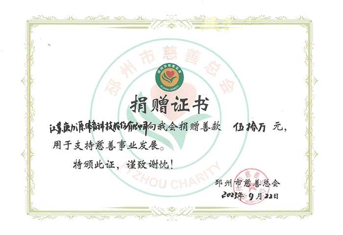 Donation certificate of Pizhou Charity Association